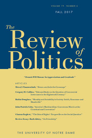 2018 “Reconciliation through Estrangement.” The Review of Politics 80, no. 4 (2018): 649–73.